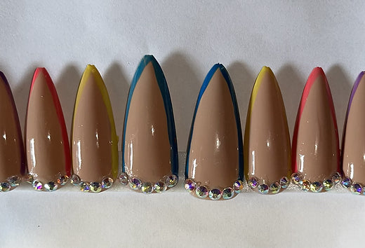 Colorful tips stiletto nails (size large)